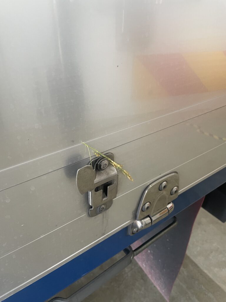 なんとトラックの金具に、稲穂がちょこんと挟まっていました。